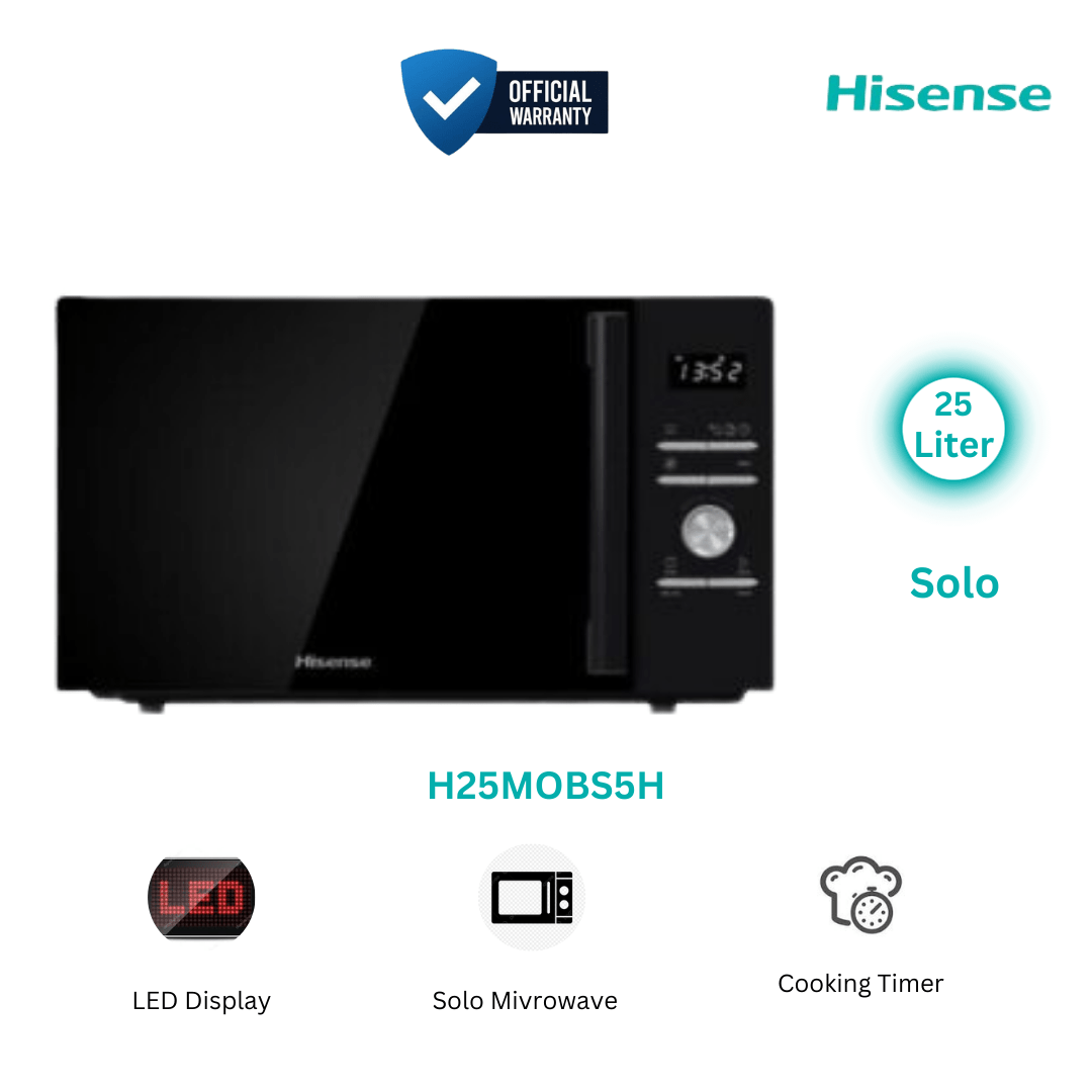 • The HISENSE H25MOBS5H 25L Solo Microwave Oven strikes the perfect balance between size and performance, catering to your everyday cooking needs. With a generous 25-liter capacity, it provides plenty of room for reheating, defrosting, and cooking meals for individuals or small families. Its compact design makes it an ideal choice for kitchens with limited counter space, ensuring efficient cooking without compromising on power.